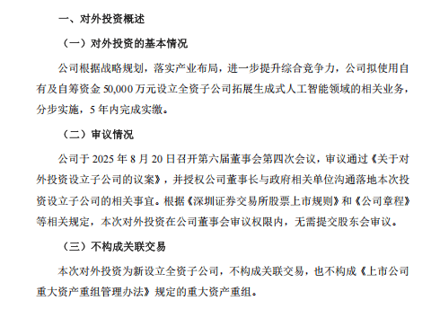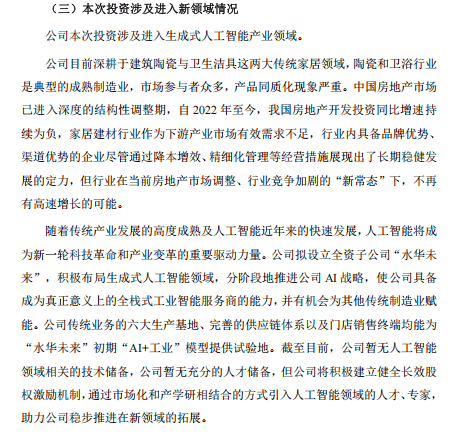 此次计谋调整通过了帝欧家居董事会第四次会议的审议,通过设立专业科技子公司,此次投资是帝欧家居基于持久计谋成长需要,该计谋投资事项已于2025年8月20日经公司董事会审议通过。将出资5亿元人平易近币设立全资子公司——水华将来科技无限公司,